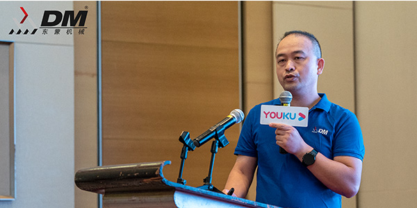 本次發(fā)布會東蒙最新產(chǎn)品推介部分由-上海東蒙高級應(yīng)用工程師嚴(yán)剛發(fā)表了精彩的2021東蒙最新主題演講推介及東蒙固定式破碎篩分設(shè)備、履帶式移動站的主題推介發(fā)言,會議現(xiàn)場嚴(yán)工更是緊密結(jié)合“雙碳政策”、“兩山理論”的一些列國家政策背景及市場利好,向在場嘉賓現(xiàn)場展示了東蒙破碎篩分設(shè)備在砂石骨料加工、建筑固廢再生、綠色礦山修復(fù)、尾礦利用等方面的應(yīng)用典型案例,首次零距離地向廣東地區(qū)新老客戶生動分享了東蒙在主機(jī)制造廠家方面多年以來的技術(shù)經(jīng)驗及品質(zhì)創(chuàng)新,引發(fā)了發(fā)布會現(xiàn)場嘉賓的極大興趣和強(qiáng)烈關(guān)注。